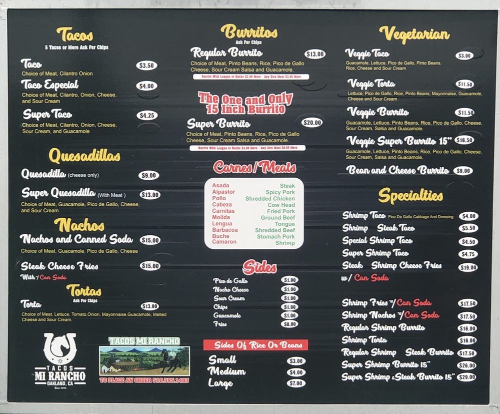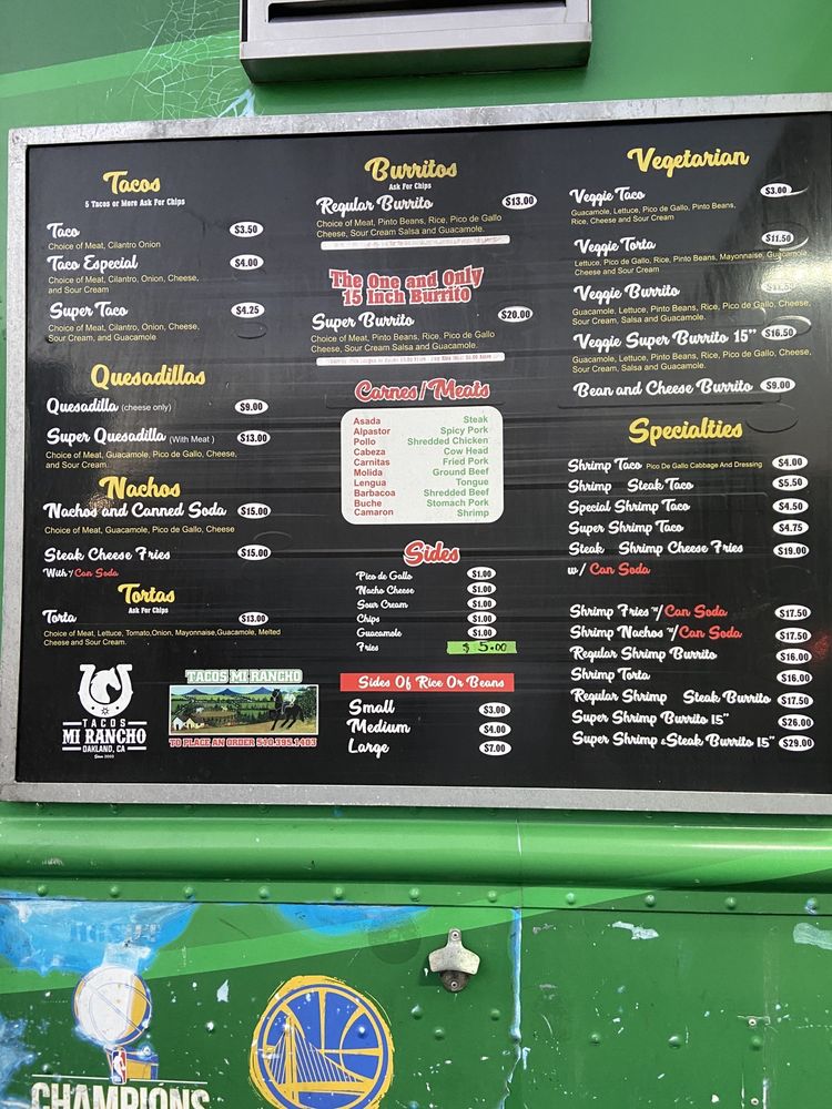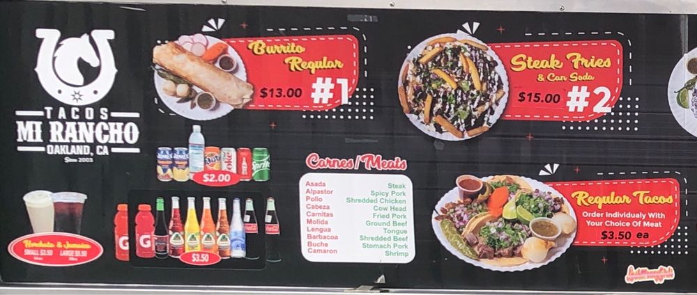 Tacos Mi Rancho is a popular Mexican food truck located in Oakland, CA. Offering a variety of options including tacos, burritos, tortas, and steak fries, this food truck has garnered rave reviews from customers. Known for their fantastic burritos, flavorful tacos, and outstanding al pastor, it's a go-to spot for many locals. With options for vegans and limited vegetarian choices, Tacos Mi Rancho caters to a diverse range of preferences. Customers praise the fast service, great ambiance, and consistently delicious food. The standout items include the lengua tacos, tortas with pickled carrots, and the super burrito. While some mention the slightly higher prices, the quality and taste make it worth it. Don't miss out on this favorite taco truck in the Bay Area!